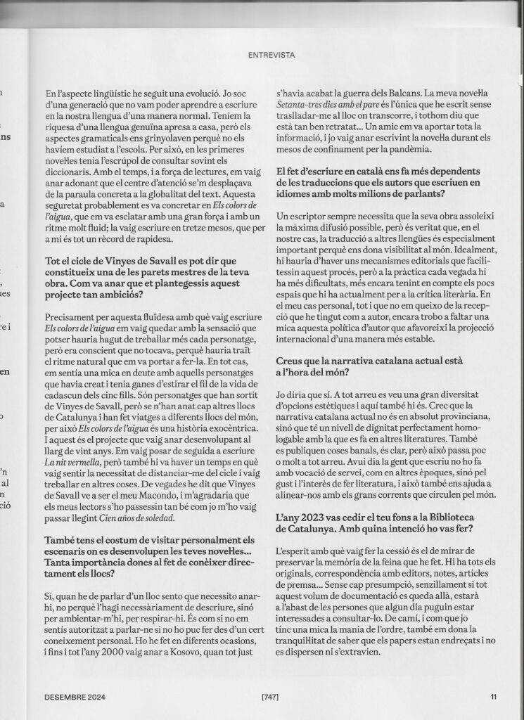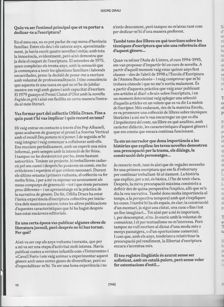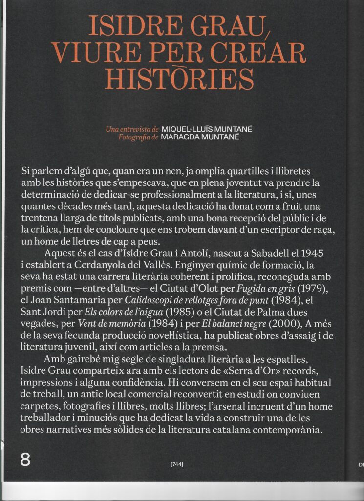 Isidre Grau, viure per crear històries Entrevista a Isidre Grau de Miquel-Lluís Muntané a la revista Serra d’Or, 780. Desembre 2024
