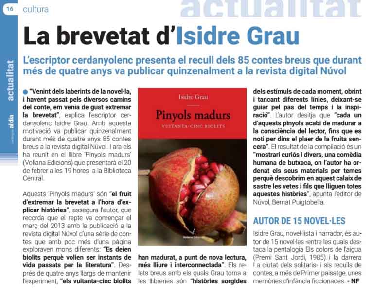 L’escriptor cerdanyolenc presenta el recull dels 85 contes breus que durant més de quatre anys va publicar quinzenalment a la revista digital Núvol.